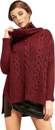 Shein Pull En Tricot Col Haut Manches Longues Femme Taille Unique