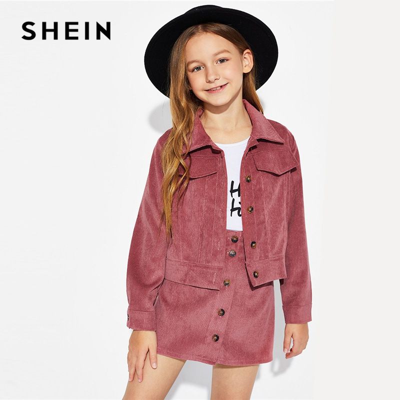 Acheter Shein Kiddie Bouton Rust Veste En Velours Cotele Et Jupe