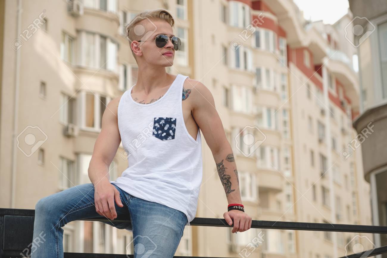 Hipster Homme Homme Beau Dans Les Vetements D Ete Elegante Dans La